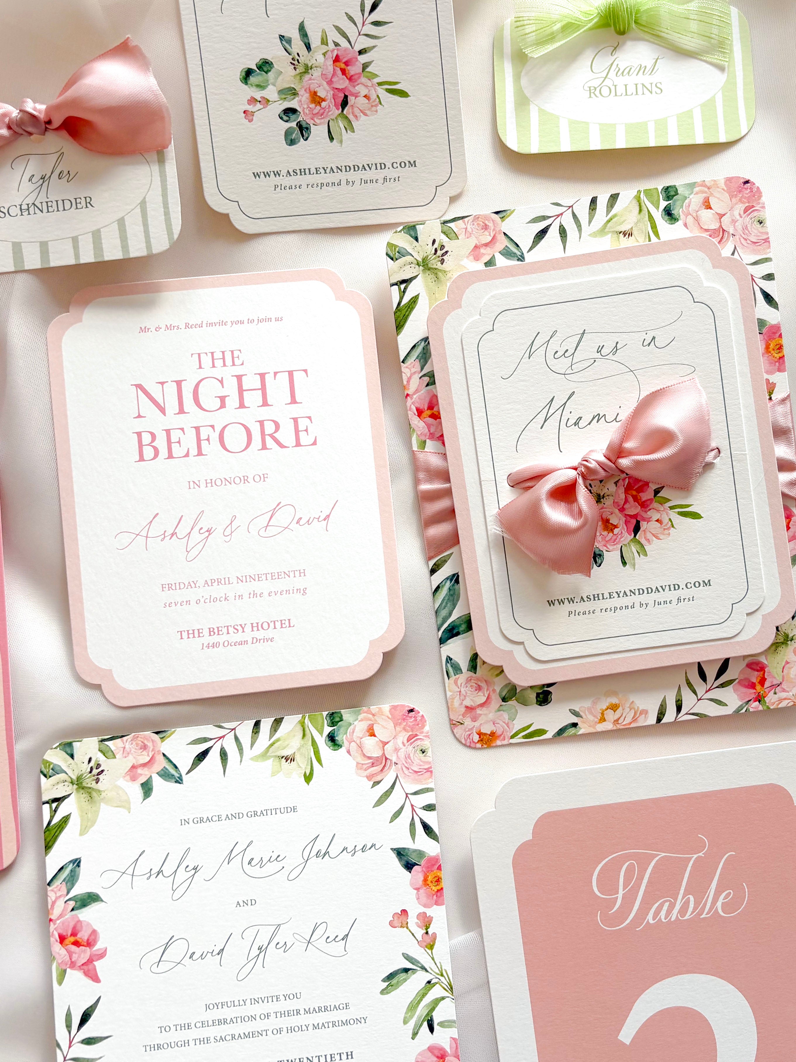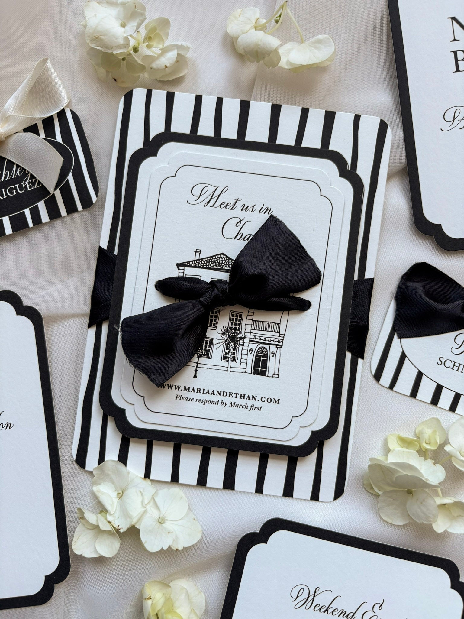 Everything here is semi-custom, which means you get the best of both worlds: a beautiful base design and the freedom to make it completely yours. Pick your suite, then play with colors, fonts, custom artwork, and pretty details like ribbon, wax seals, or vellum wraps — all while staying comfortably within your budget.