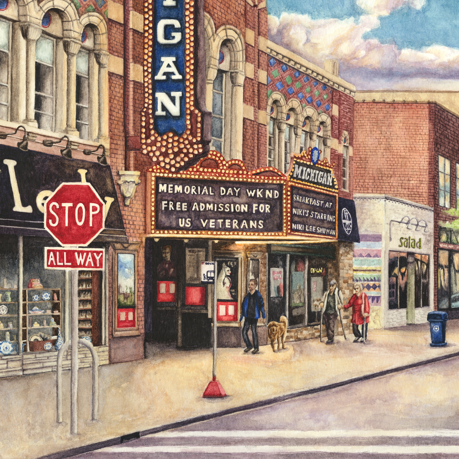An enchanting watercolor painting of Niki's hometown, Ann Arbor, Michigan.